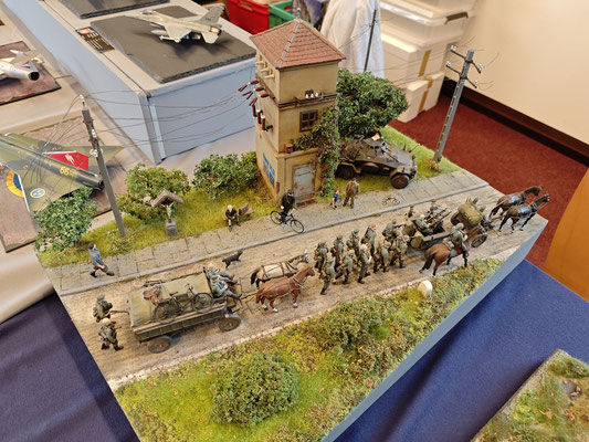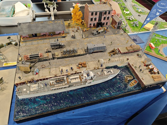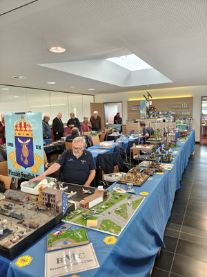 In diesem Oktober war es wieder soweit, unser Nachbarverein Hannover hat wieder zu seiner einmal jährlichen Ausstellung geladen. Wir konnten auch in diesem Jahr mit 7 Wochenend- und einigen Tagesgästen unsere Modelle hervor zeigen und hatten viel Spaß. Untergebracht waren wir wieder im ersten Stock auf der Empore über dem Bistro, wo es immer lecker roch. Unser Stand war etwa 10m lang, die Tischbreite bereitete uns anfangs ein paar Sorgen, da wir etwas breitere Exponate mithatten, aber unser Tischnachbar Alex konnte helfen. In der Mitte des Standes konnten wir noch einen Bastel und Esspausenplatz errichten, der ausgiebig genutzt wurde. Die restliche Halle war gut gefüllt mit Clubs und Einzelausstellern aus Norddeutschland, wo man dann die neuesten Modellbaucreationen bewundern konnte. Unter dem Ausstellungstisch konnte man so einige Schnäppchen ergattern, richtige Händler gibt es bei dieser Ausstellung aus Platzgründen nicht.
